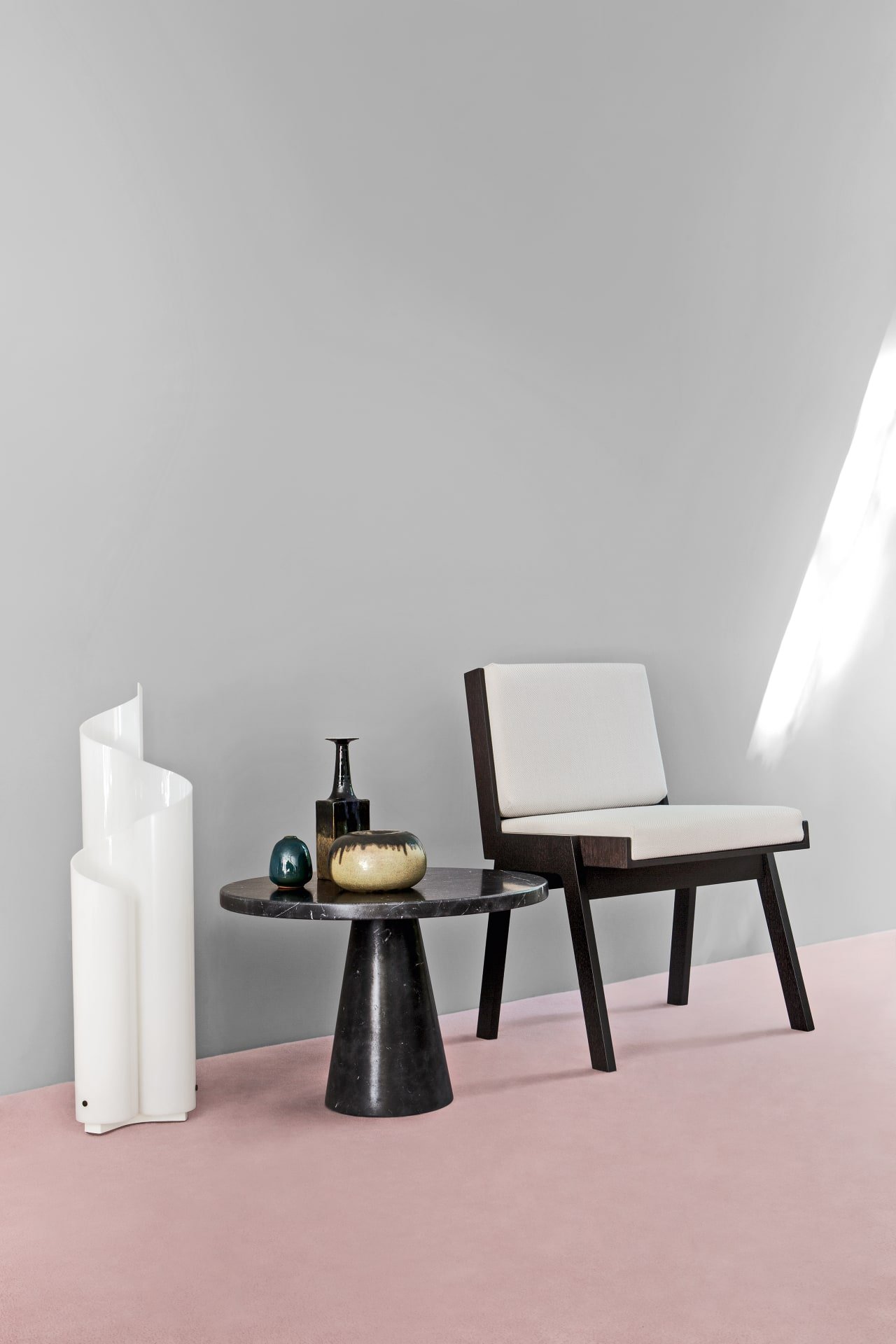Originally designed in 1957 for the renovated Club 44 in La Chaux-de-Fonds in Switzerland, it is a decidedly architectural armchair, still totally functional. Fully stable, surprisingly comfortable, severe but with character, its seat design derives from the “Cavalletto” system, of which it is an ideal but more unusual continuation.